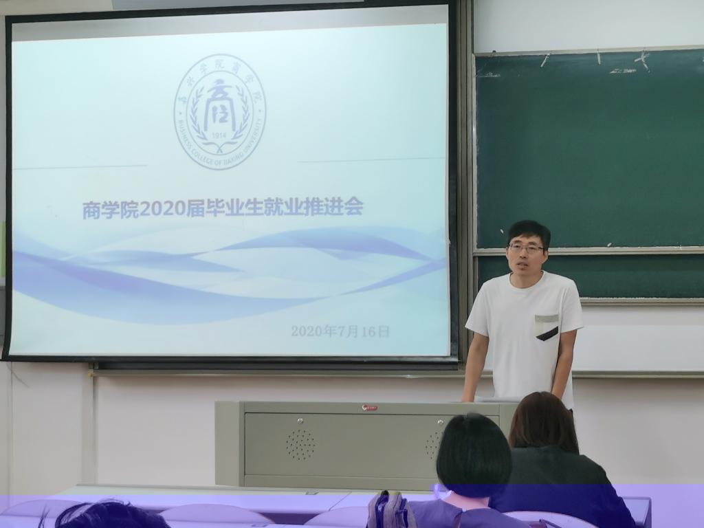 會上,學院就業指導中心馬中光老師通報了學院2020屆畢業生就業整體情況,通過新冠疫情影響分析和往年同期數據比對,聚焦下一階段工作難點:公務員省考備考、考研二戰學生群體的就業指導及留禾比率的進一步提升。各專業輔導員逐一反饋了所在專業未就業學生的摸底情況,梳理了當前就業工作存在的問題以及下一步的工作打算。國經系主任王煥祥老師就如何将對就業工作的重視有效傳導到導師、授課老師,如何和學工形成高效互動、多條線開展工作等方面進行交流分享。陳雲飛書記傳達了省、市相關文件精神,客觀剖析新冠疫情對商科學生就業的影響,并就學院就業推進工作進行分階段的安排部署。